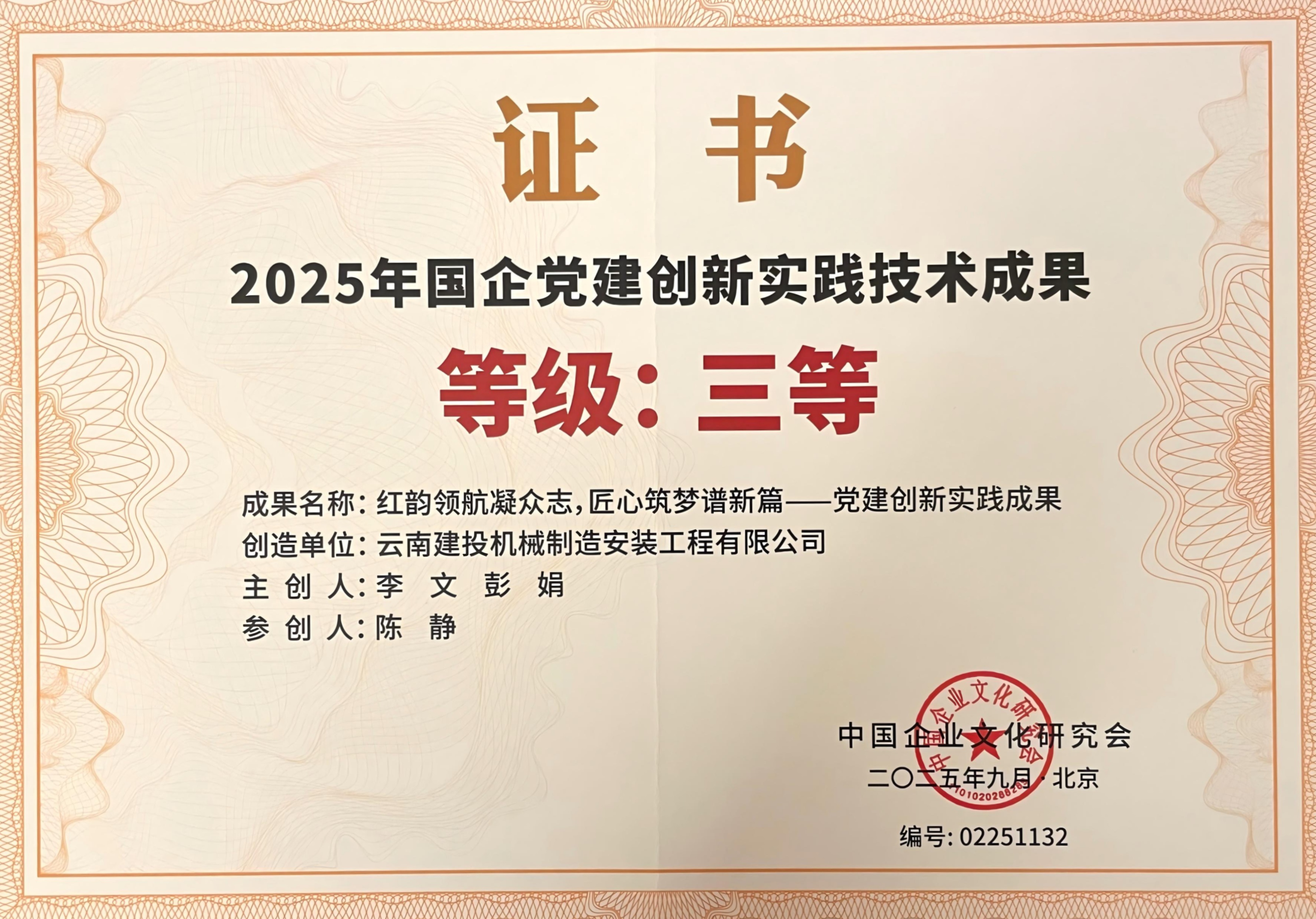 喜訊!公司黨建成果獲評2025年國企黨建創新實踐技術三等成果